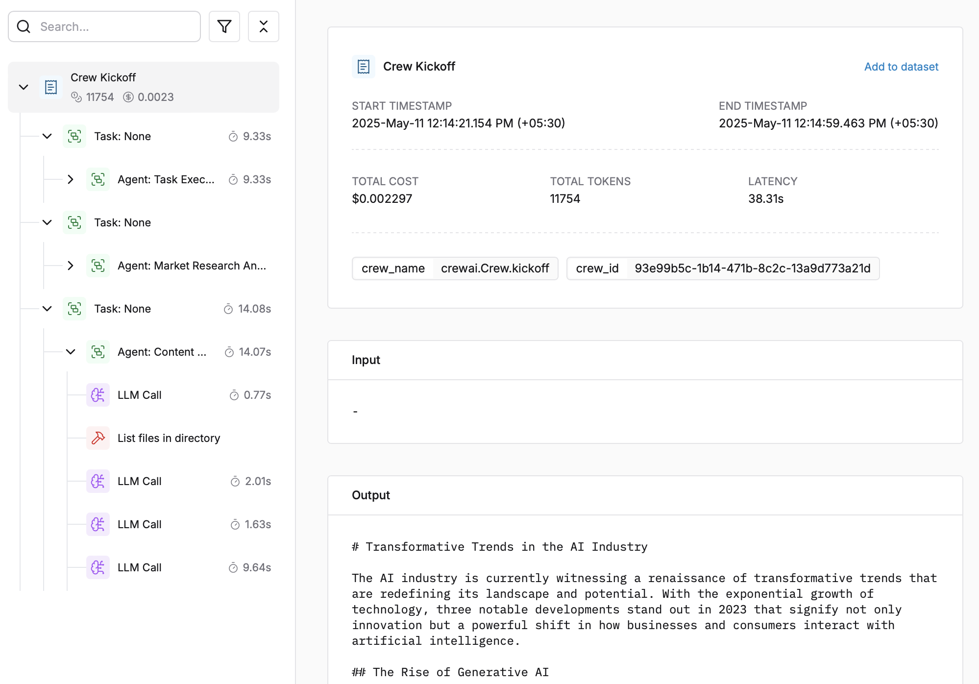 Após executar sua aplicação CrewAI: